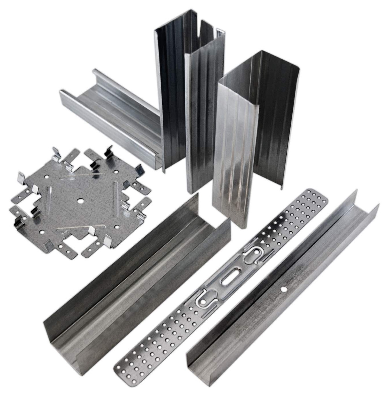 - Уголки. Профили в форме угла применяются для соединения других элементов и придают конструкции дополнительную устойчивость.